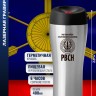 Гравировка нанесена с одной стороны металлической термокружки.