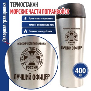Сохранение тепла до: 6 ч., холода до: 8 ч. Материал корпуса и колбы термо стакана: Нержавеющая сталь. Герметичная крышка: Да (непроливайка, с нажимным клапаном - кнопкой для питья). Вакуумные стенки (двойная колба): Да (долго держит тепло напитков). Объём автокружки: 400 мл. Гравировка нанесена с одной стороны металлической термокружки. Размер: 22 x 8 x 8 см. Материал крышки: Пластик. Благодаря стильному дизайну и высококачественной стали, автомобильный термостакан для кофе или горячего чая долго сохраняет тепло и холод, будто небольшой туристический термос, что делает его подходящим вариантом для любого образа жизни. Подарочная термо кружка с надписью станет отличным спутником в машине (для автомобиля), дома или офисе. Актуально как оригинальный подарок с нанесенным логотипом от коллектива, либо в качестве сюрприза с принтом для друзей, а также на праздники близких людей. Морчасти погранвойск обеспечивают охрану государственных границ на водных рубежах. Их задачи включают контроль за соблюдением режима территориальных вод и противодействие незаконной деятельности. Уместен как знак признания за службу по охране рубежей, обеспечению государственной безопасности и верность присяге. 4395