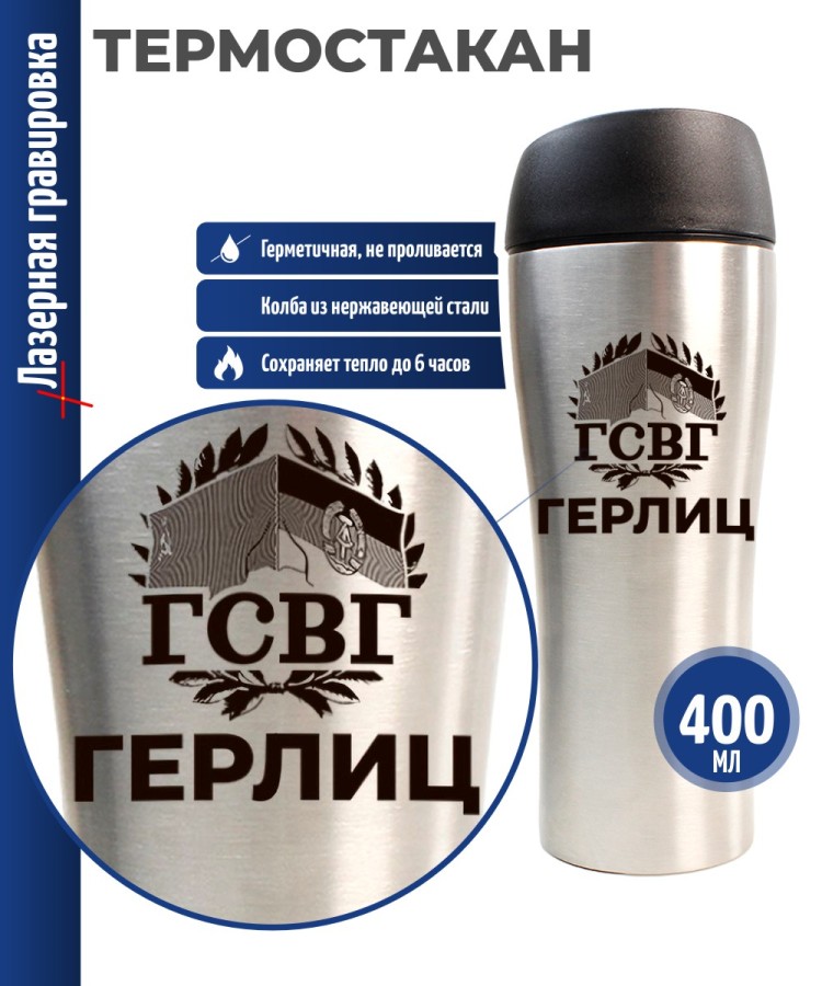Сохранение тепла до: 6 ч., холода до: 8 ч. Материал корпуса и колбы термо стакана: Нержавеющая сталь. Герметичная крышка: Да (непроливайка, с нажимным клапаном - кнопкой для питья). Вакуумные стенки (двойная колба): Да (долго держит тепло напитков). Объём автокружки: 400 мл. Гравировка нанесена с одной стороны металлической термокружки. Размер: 22 x 8 x 8 см. Материал крышки: Пластик. Благодаря стильному дизайну и высококачественной стали, автомобильный термостакан для кофе или горячего чая долго сохраняет тепло и холод, будто небольшой туристический термос, что делает его подходящим вариантом для любого образа жизни. Подарочная термо кружка с надписью станет отличным спутником в машине (для автомобиля), дома или офисе. Актуально как оригинальный подарок с нанесенным логотипом от коллектива, либо в качестве сюрприза с принтом для друзей, а также на праздники близких людей. Для ветерана ГСВГ - представителя Группы советских войск в Германии СГВ, служившего в составе объединений, соединений, частей и учреждений, входивших в структуру Вооружённых Сил СССР. Подходит для военного, проходившего службу в Западной группе войск (ГСОВГ, ГСВГ, ЗГВ) на территории ГДР, в армии или РККА. Актуален по случаю юбилея службы, памятной даты, награждения или как символ уважения к поколению, обеспечивавшему стабильность и присутствие за границей. Подчеркнёт значимость вклада, сохранит память о гарнизоне, боевом пути и товарищах. 4395