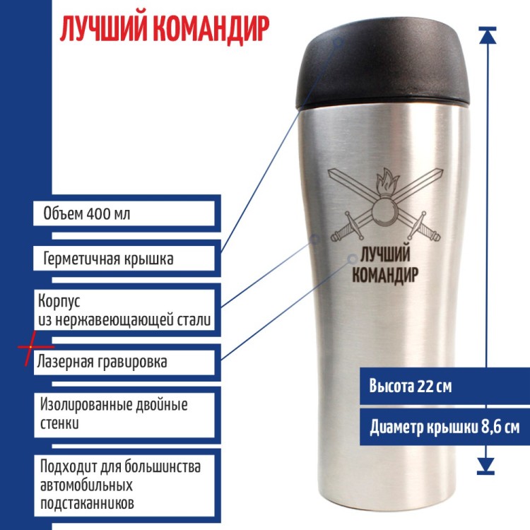 Подарочная термо кружка с надписью станет отличным спутником в машине (для автомобиля), дома или офисе. Актуально как оригинальный подарок с нанесенным логотипом от коллектива, либо в качестве сюрприза с принтом для друзей, а также на праздники близких людей.
