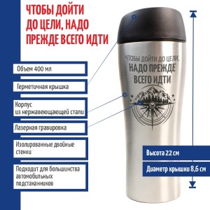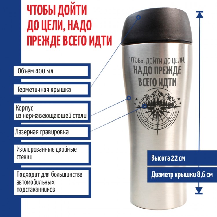 Термокружка "Чтобы дойти до цели надо прежде всего идти" стального цвета (400 мл) - описание товара