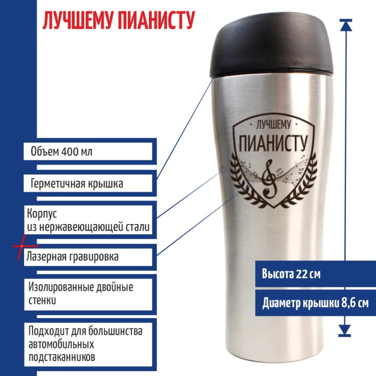 Подарочная термо кружка с надписью станет отличным спутником в машине (для автомобиля), дома или офисе. Актуально как оригинальный подарок с нанесенным логотипом от коллектива, либо в качестве сюрприза с принтом для друзей, а также на праздники близких людей.