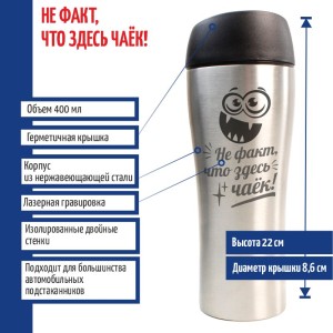 Подарочная термо кружка с надписью станет отличным спутником в машине (для автомобиля), дома или офисе. Актуально как оригинальный подарок с нанесенным логотипом от коллектива, либо в качестве сюрприза с принтом для друзей, а также на праздники близких людей.