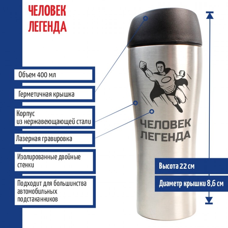 Подарочная термо кружка с надписью станет отличным спутником в машине (для автомобиля), дома или офисе. Актуально как оригинальный подарок с нанесенным логотипом от коллектива, либо в качестве сюрприза с принтом для друзей, а также на праздники близких людей.