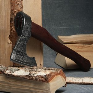 Топоры ручной работы отличаются красотой и высокими эстетическими свойствами, однако они могут выполнять и основную функцию - рубку. Представленный топор изготовлен вручную, он прочен, надёжен и отличается хорошим качеством. Кованая сталь топорища может быть покрыта рисунком, резная рукоять с узорами и орнаментами служит украшением, привлекает внимание. Топорики относятся к хозяйственно-бытовой категории, поэтому для их покупки не требуется сертификата. Подарочный топор - это оригинальный и интересный сувенир, который пригодится и в хозяйстве.