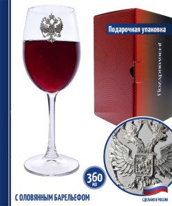 Винный бокал на ножке с оловянным гербом подходит для подачи вина, шампанского и других напитков.