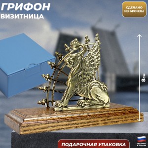 Подставка для визиток "Грифон с Банковского моста" из бронзы и дерева