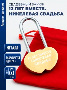Замочек сердца "12 лет вместе. Никелевая свадьба" (защёлкивается один раз) - описание товара