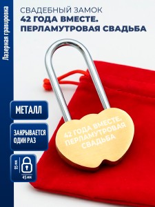 Замочек сердца "42 года вместе. Перламутровая свадьба" (защёлкивается один раз)
