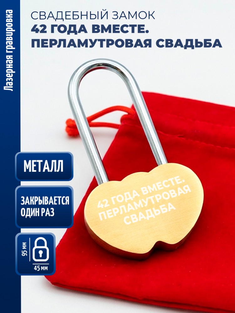 Замочек сердца "42 года вместе. Перламутровая свадьба" (защёлкивается один раз) - описание товара