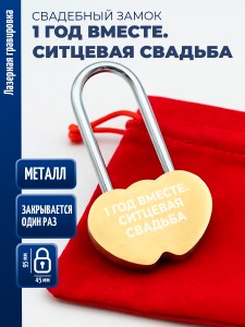 Замочек сердца "1 год вместе. Ситцевая свадьба" (защёлкивается один раз) - описание товара