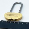 ВАЖНО!!! Замок придет к вам с открытой дужкой. Закрыть замок возможно только один раз и навсегда, в этом его смысл. Ключи в комплекте декоративные, для фото того как новобрачные кидают ключи с моста в воду. Замок защёлкивается один раз. Ключи сувенирные, на память. Открыть ими потом замочек не получится. Размер: 9 × 5 × 0,7 см. Материал: Металл. Упаковка: Цветная картонная коробка. Размер упаковки: 10 × 5 × 1 см. Интимный и персональный способ сохранить теплые воспоминания и чувства, станет символом вашей близости и любви. Оригинальный подарок на любой праздник или награждение. Он станет достойной памятной наградой за победы и достижения от коллектива на память. Символизирует не только личные успехи, но и благодарность за труд и преданность делу. Актуально в качестве новогоднего сюрприза жене, мужу, отцу, взрослым родственникам (папе, дедушке, маме, бабушке), коллегам (начальнику), преподавателю или юбиляру. Такой красивый сувенир подходит для множества знаковых дат и событий дома и в офисе, на юбилеи родителей, международный женский день (8 марта), 14 и 23 февраля, Новый год или день рождения (ДР). Считается хорошим корпоративным подарком как для мужчин (сыну, брату, другу, любимому парню, руководителю), так и для женщин (начальнице, дочери, сестре, подруге или девушке). 1635