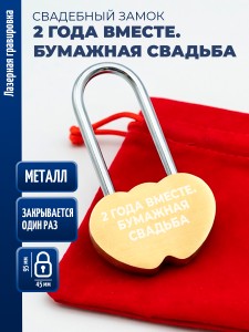 Замочек сердца "2 года вместе. Бумажная свадьба" (защёлкивается один раз) - описание товара