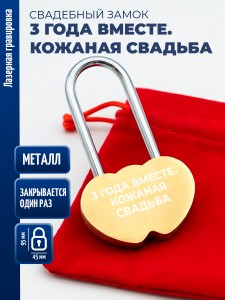 Замочек сердца "3 года вместе. Кожаная свадьба" (защёлкивается один раз) - описание товара