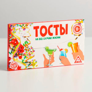 Поднимите бокал за креативные тосты с алкогольной игрой "Тосты на все случаи жизни". Играйте в компании от 2 до 6 и более человек, знакомьтесь с новыми тостами и наслаждайтесь веселыми моментами. Идеально для взрослых вечеринок и посиделок.