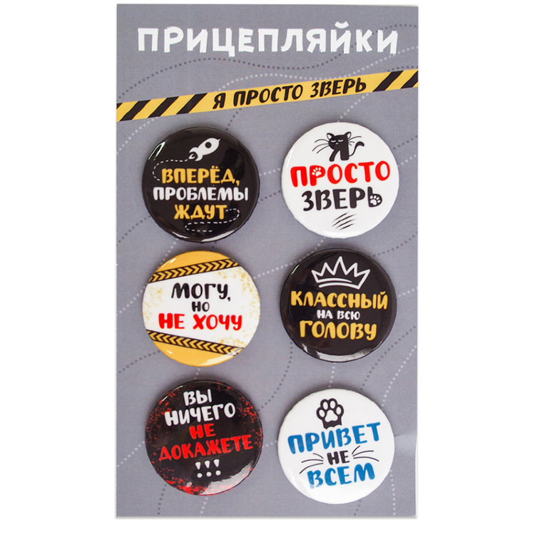 Покажите всем свою дикую сторону с набором . Шесть металлических значков для тех, кто чувствует себя королём джунглей.