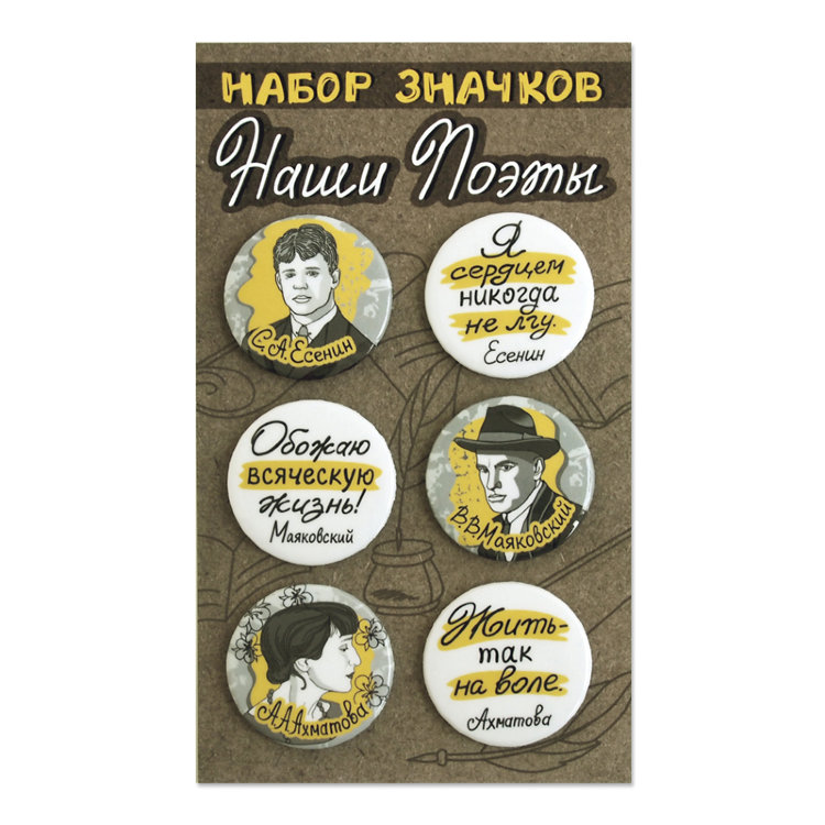 Отдайте дань уважения классикам с набором значков . Идеальный способ украсить вашу одежду духом поэзии.