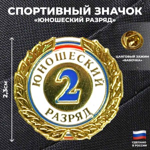 значок является символом достижения второго юношеского спортивного разряда, выполнен из металла.