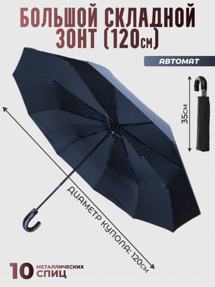 Переживите каждый ливень под защитой складного зонта "Black" с большим куполом, гарантирующего вам сухость и комфорт.